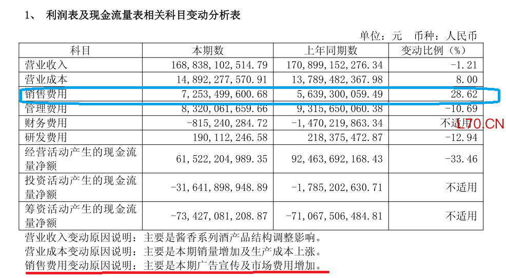与之形成鲜明对比的是茅台的销售费用。尽管2025年茅台全年营收、净利润双降,但是其2025年销售费用同比则大涨28.62%,达到72.53亿元。对此,茅台称“主要是本期广告宣传及市场费用增加”。
