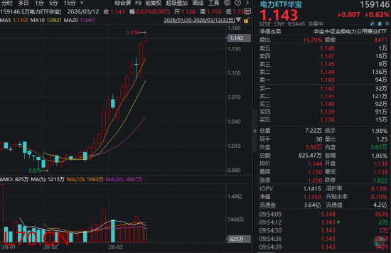 12日早盘,电力板块持续冲高,绿电概念反复走强,绿发电力三连板,节能风电两连板!此外,大唐电力首板,协鑫能科、永泰能源、京能电力等多股涨超5%。热门ETF方面,全“电”布局的电力ETF华宝(159146)盘中涨超1%七连涨再创新高!