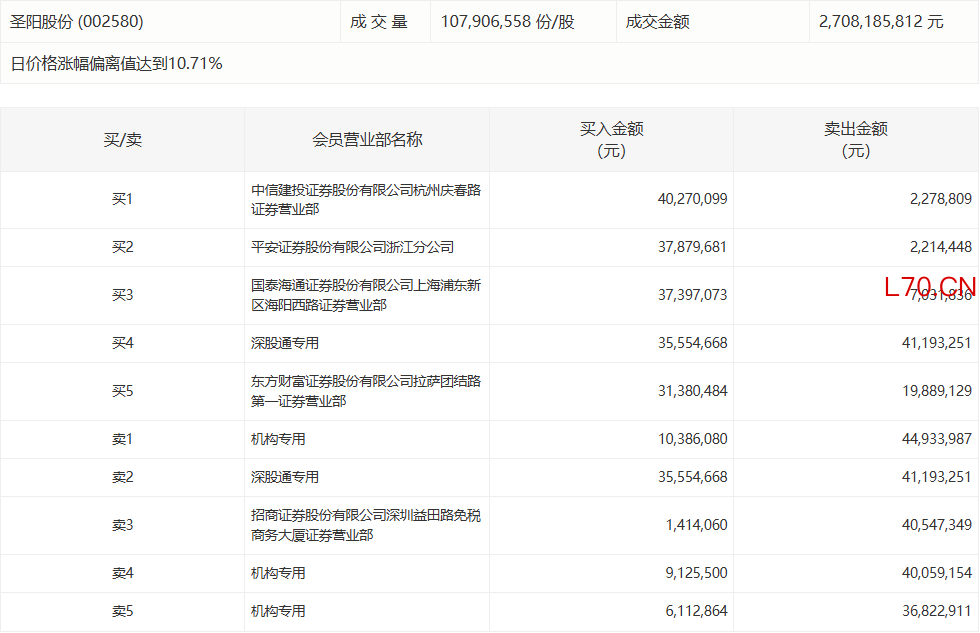圣阳股份今日涨停,有3家机构专用席位净卖出9619.16万元