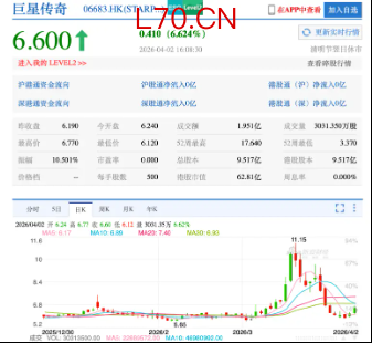 虽然巨星传奇正极力丰富业务形式,但就目前股价而言,二级市场的认可度仍有待提升。截至最近一个交易日,巨星传奇收盘价为6.6港元,距离周杰伦入驻抖音时的17.64港元,股价已跌去62.5%。