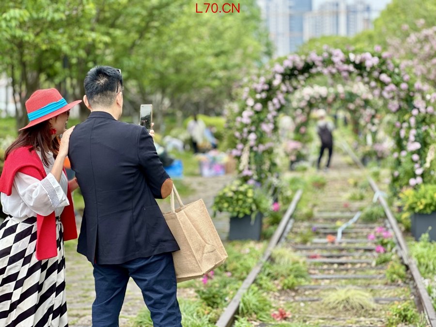 今天上午,新民晚报记者沿滨江3公里岸线漫步。无论是江畔的竹丝花艺装置,还是铁轨上的鲜花拱门,无不令人感受到春的美好。