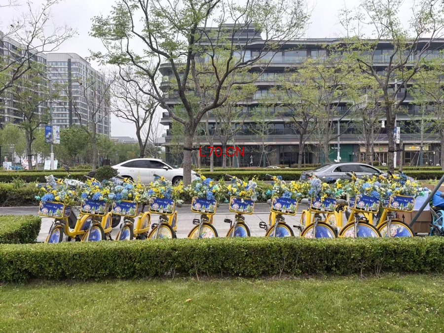新民晚报记者看到,在徐汇滨江的临时停放点上,特别为花卉节定制的美团单车集体亮相,黄色车身和车篮中妆点着蓝色花艺,特别夺人眼球。
