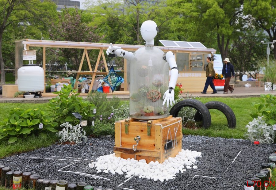 在造园过程中充分体现了共建理念。他举例说,虹梅街道的“AI共生花园”主创者是两名球友,在球友群里发消息说代表社区参加花卉节,向大家征集造花园需要的旧瓶子,两个晚上就收到好多瓶子。漕河泾街道、康健街道的“都市疗愈阳台”则融合了药食同源理念,主创者在小红书上发帖记录造园过程,收到了30多条留言,今天早上还有浙江园艺爱好者说也想加入这个园子的营造。