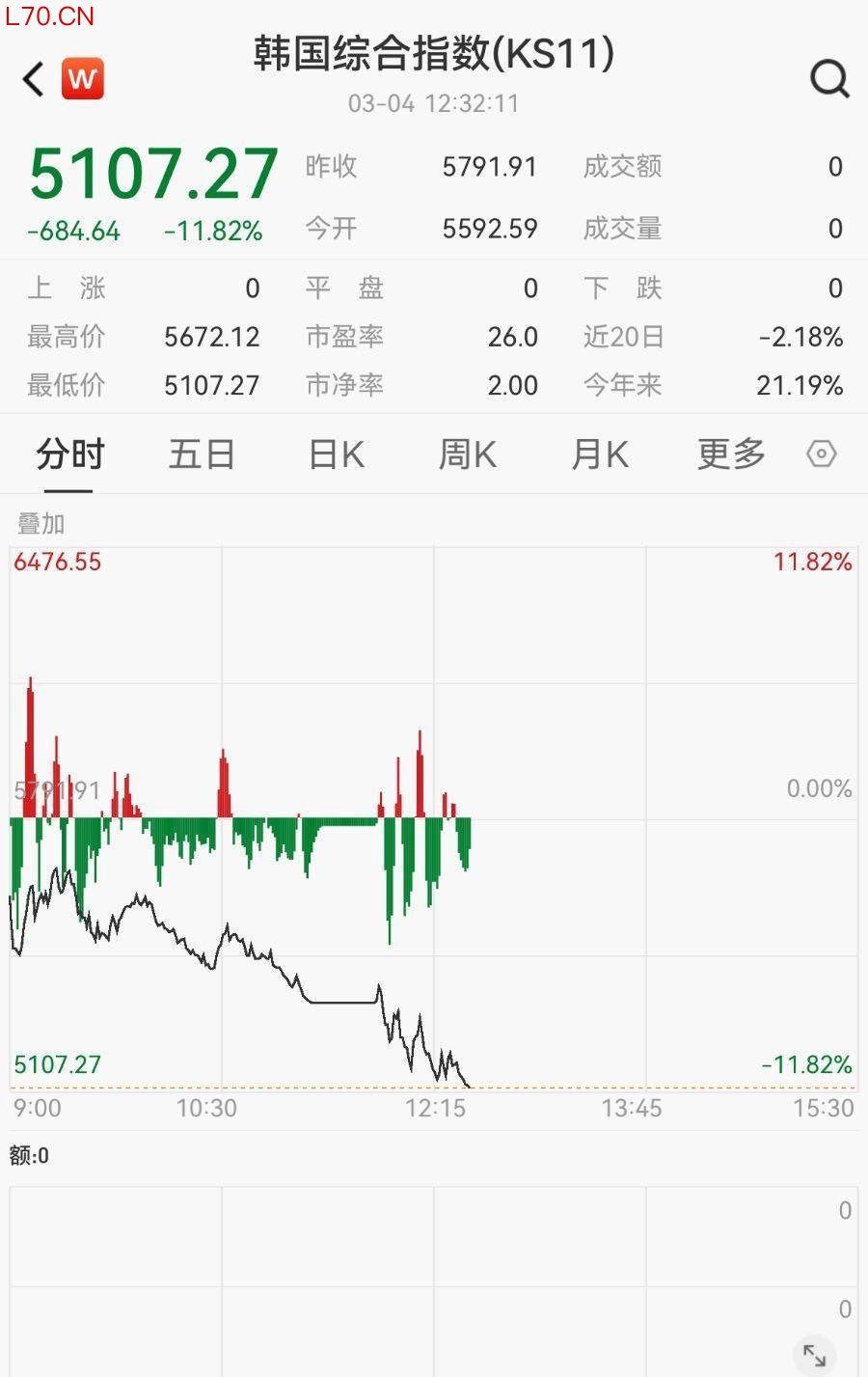 或受美以袭击伊朗的影响,韩国股市再遭“黑色星期三”。