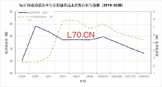 图表 6 匈牙利政府债务率与长期融资成本趋势分析与预测(2019–2028)