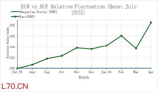 图表3 EUR vs HUF Relative Fluctuation (Base: July 2025)
